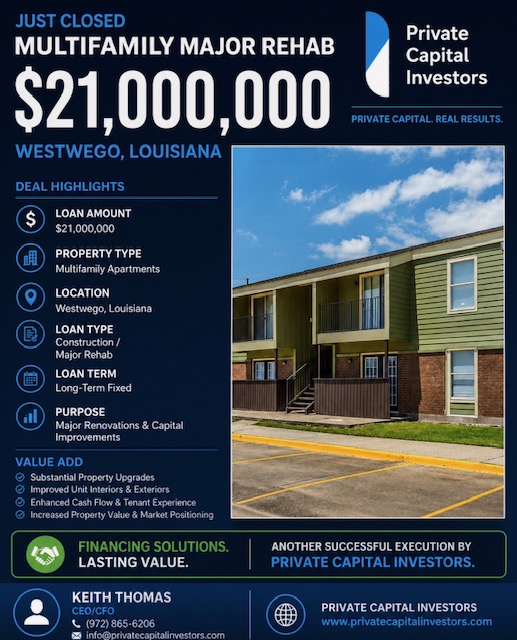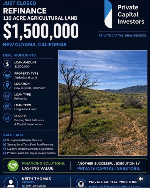 “I am pleased to be able to drop a quick line to thank Keith at Private Capital Investors for the wonderful service that was provided to me and my company. I felt as though we were in the right hands, and receiving the type of support every borrower hopes for.”